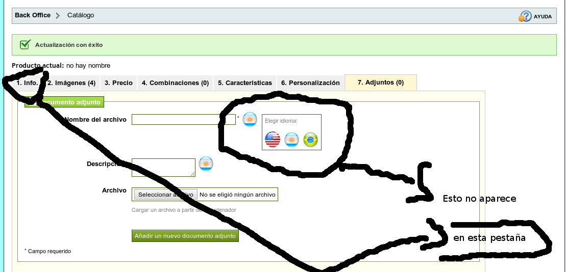 Antes al lado de cada campo me aparecia la bandera para elegir el idioma y traducir el producto en tantos idiomas instalados tuviera, pero ahora ha desaparecido, solamente me muestra un asterisco y necesito traducirlos.