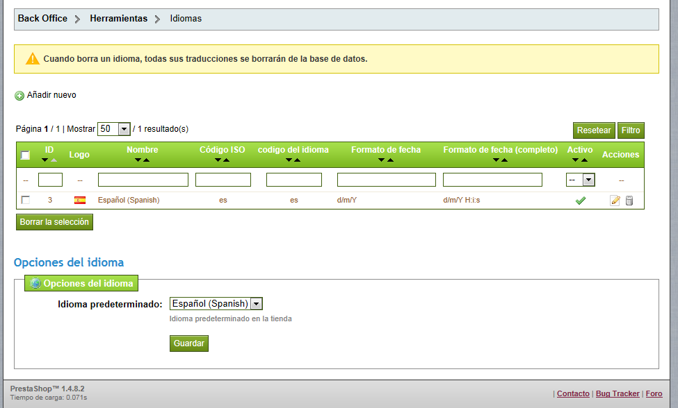 A ver pero si prestashop, no te deja borrar el idioma ingles, te deja desactivarlo pero no borrarlo, has comprobado que no lo tengas desactivado?