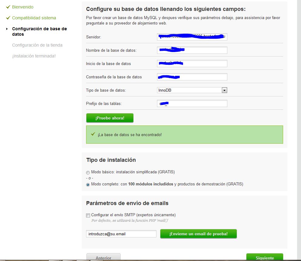 ruben.pelayo Posted June 26, 2012 Share Posted June 26, 2012 Hola a todos, Estoy intentando instalar la nueva versión de Prestashop en mi hosting (godaddy) en el punto de CONFIGURACIÓN DE BASE DE DATOS, resulta q yo relleno mis datos para conectar a la BD, hago la prueba y funciona correctamente, en el Tipo de instalación escojo el Modo COMPLETO y en los Parámetros de mail no marco nada, ni relleno nada. Le doy al botón SIGUIENTE y hace como si fuera a cambiar de pantalla pero me muestra la misma, y ahi se queda, no pasa la siguiente paso, pero en cambio me ha creado todas las tablas de la Base de Datos y se puede acceder al Frontend, pero la instalación ahi se queda. He puesto un pantallazo exactamente en el momento de la instación donde se queda y no avanza.. Alguién sabe como puedo solucionar esto? Gracias por la ayuda Link to comment Share on other sites More sharing options...