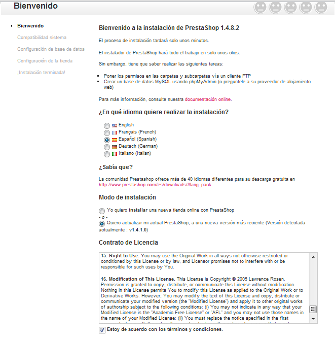 turbowebs Posted June 28, 2012 Share Posted June 28, 2012 Hola a todos, acabo de terminar de subir todos los archivos por FTP con la nueva version pero ni bien quiero iniciar la instalacion desde www.dominio.com/catalogo/install me aparece la pantalla de instalacion para que acepte el contrato pero NO ME PONE ABAJO LOS BOTONES PARA SEGUIR!!!! Me dije despues de tanto trabajo, tanto editar archivos se me viene a trabar todo por esto taradez. Aclaro que la tienda ya funcionaba y muy bien. Aca les dejo una captura de pantalla. Link to comment Share on other sites More sharing options...