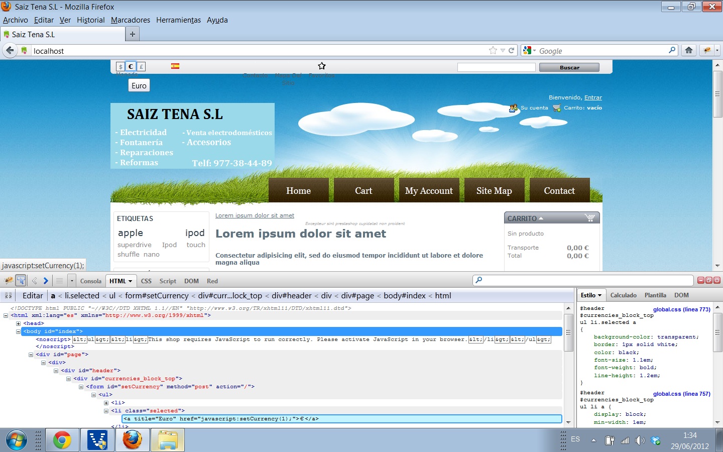 nadie Posted June 29, 2012 Share Posted June 29, 2012 Hola, buenas noches compañero, Antes que todo agradecer a la gente que colabora en este foro, ya que en muchas ocasiones me habéis solucionado un dolor de cabeza. Ahora os presento uno, que si me lo resolvéis estoy seguro que mi utilización de prestashop va a cambiar muy satisfactoriamente. Os paso la imagen para que entendáis mucho mejor lo que os quiero preguntar. En el firebug de mozilla puedo "modificar" las cosas de forma rápida, pero claro, cuando refrescamos la pantalla los cambios se van al "garete". Por ejemplo, en la plantilla que he escogido sale el símbolo del dolar y del euro y quiero borrar el del dolar, lo selecciono con firebug lo borro y desaparece pero luego nada. Por lo tanto, me gustaría saber cuando selecciono un atributo de la plantilla y me aparece el código abajo saber realmente dónde está ese archivo?. Dónde puedo ver a qué archivo hace referencia el código que estoy seleccionando? es posible?. Si todas las modificaciones pudiese saber en qué archivo está todo podría solucionar de forma mucho más ágil mis problemas.. a ver si me ayudáis. Os dejo la foto, importante mirarla para entender bien el mensaje que he escrito, que está algo liado. Un saludo compañeros, Si usted desactiva tal moneda en la pestaña Pagos/Divisas, ya no aparecerá hay tal moneda. Link to comment Share on other sites More sharing options...
