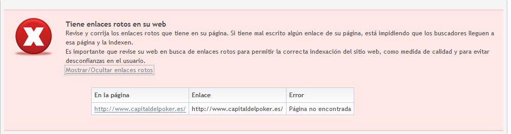 capitaldelpoker Posted June 29, 2012 Share Posted June 29, 2012 Buenas noches, Ayer al crear el sitemap para notificar a los buscadores me aperecio un error de enlace roto, he estado comprobando y no veo que el enlace este roto, os pego imagen del error. alguna sugerencia para solucionarlo?, pues no me crea el sitemap por esta causa Gracias de antemano Link to comment Share on other sites More sharing options...