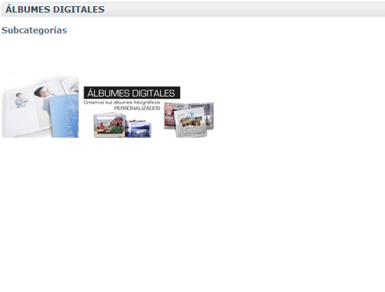 franmille Posted July 2, 2012 Author Share Posted July 2, 2012 (edited) Hola Nadie, te comento: -El tamaño de las imagenes que utiliza por defecto es de 80x80 (medium), al cambiarlo a 200x200 se juntan las imagenes y no se ve el nombre de la subcategoría. (te adjunto imagen) -En el código de category.tpl veo que es donde coge los valores para luego representarlas imagenes. -Lo que yo quiero es modificar el modo en el que se realiza esta presentación, sabes si es en css o en algún php?? Gracias Edited July 2, 2012 by franmille (see edit history) Link to comment Share on other sites More sharing options...