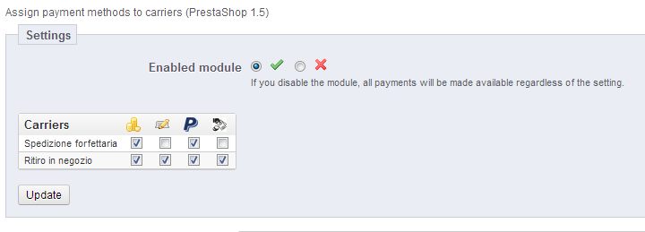 sacmo Posted January 30, 2013 Share Posted January 30, 2013 maxkart, l'accoppiata "ritiro in sede" + "Payments to carriers" è vincente, risolve il problema da te esposto alla grande. Link to comment Share on other sites More sharing options...