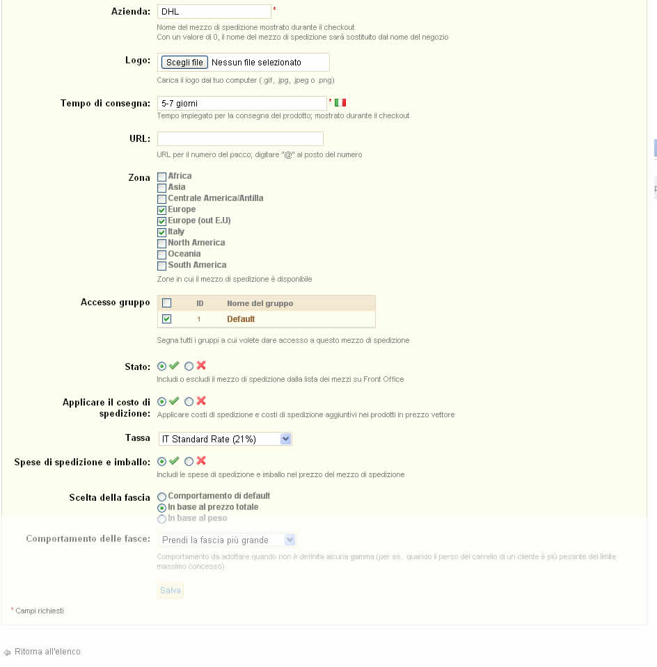 PB Informatica Posted July 3, 2012 Share Posted July 3, 2012 Ciao a tutti, sto provando a configurare prestashop e ho incontrato delle difficoltà con le spedizioni, ho letto vari topic in italiano ed in inglese per capire quale potesse essere il mio errore ma non sono approdato a niente. L'errore è: Non ci sono corrieri disponibili che consegnano a questo indirizzo. vi allego gli screen delle cfg grazie in anticipo! Massimo Link to comment Share on other sites More sharing options...