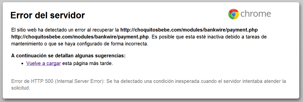 LluisAzm Posted July 4, 2012 Share Posted July 4, 2012 Buenos días, Configuré una tienda ( www.choquitosbebe.com ) de ropa de niños y la dejé todo funcionando. A los días dejaron de ir todos lo métodos de pago (transfe, contra reembolso y paypal) menos el TPV, active, desactive, reseteé, borré e instalé los módulos de 0 y nada. Cambié de servidor (por este motivo y alguno más) pensando que sería un error suyo pero nada, todo sigue igual. Ahora los tengo desactivados pero os pongo una captura del error. Probé de cambiar permisos por algo más restrictivo pero tampoco logré nada, ¿Qué puedo hacer antes de rehacerlo todo? Muchas gracias por la ayuda! Link to comment Share on other sites More sharing options...