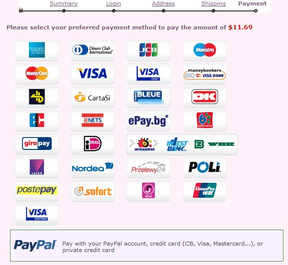 mysticprog Posted July 6, 2012 Share Posted July 6, 2012 Hi. Please help. Look at attached picture. When you go to check out I get nice PayPal frame and ugly cards of MoneyBookers. Nowhere stay text MoneyBookers. I want to remove all this cards and have only something like this: Many thanks to answer. Link to comment Share on other sites More sharing options...