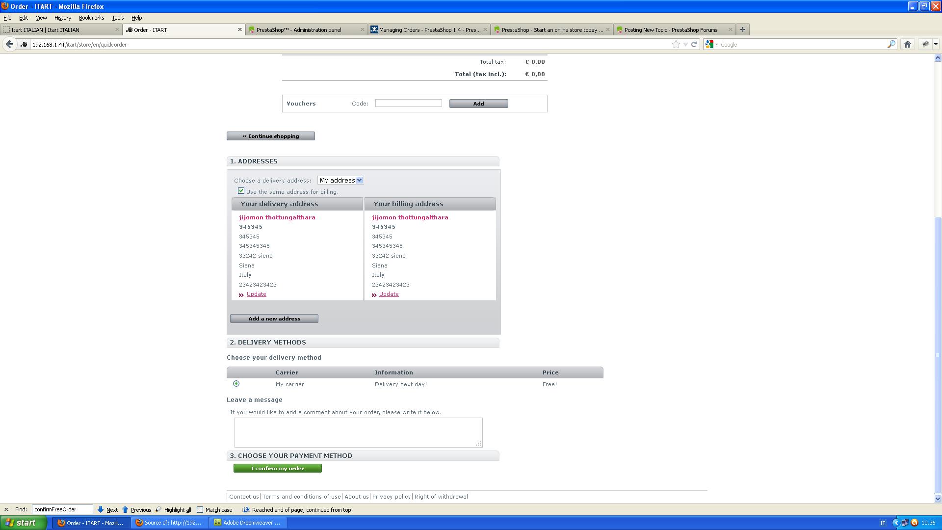 bteo Posted October 1, 2013 Share Posted October 1, 2013 I'm also looking for a solution and posted another topic here http://www.prestashop.com/forums/topic/278614-how-to-redirect-confirmfreeorder-to-a-new-page/ For me the button works but have to remove a dot Original <input type="button" class="exclusive_large" name="confirmOrder" id="confirmOrder" value="'.Tools::displayError('I confirm my order.').'" onclick="confirmFreeOrder();" /> Changed to <input type="button" class="exclusive_large" name="confirmOrder" id="confirmOrder" value="'.Tools::displayError('I confirm my order').'" onclick="confirmFreeOrder();" style="margin-left:0;" /></p>'; There is a dot in the wrong place displayError('I confirm my order').' SEE how its after order? displayError('I confirm my order.').' Link to comment Share on other sites More sharing options...