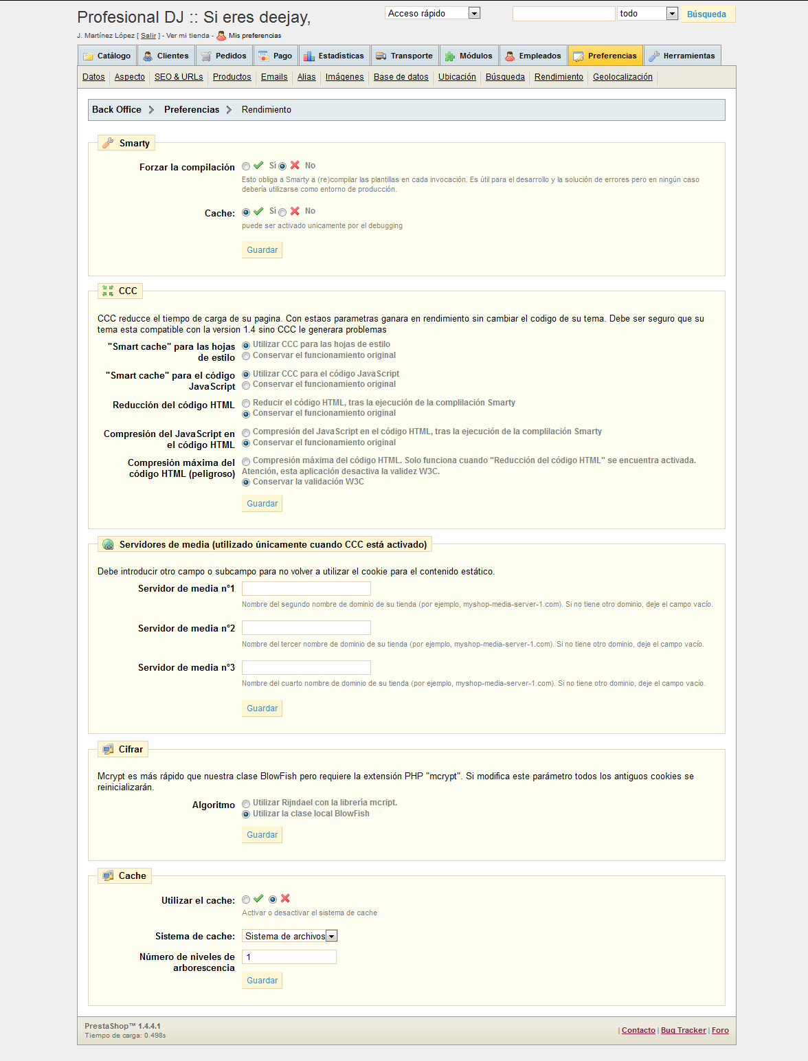 nadie Posted July 10, 2012 Share Posted July 10, 2012 Hola, buenas a todos!! tengo un problema con mi tienda, hace concretamente un año, la monté desde 0 en un servidor dedicado de ovh y hasta ahora sin ningun problema... Hace una semana contraté un servidor dedicado Kemsirve con las mismas prestaciones que el que tenia, pero mas barato (para intentar abaratar costes). El problema está en que despues de haber migrado la web y las bases de datos exactamente igual a como estaban configuradas en el anterior servidor, la web va muy lenta y tarda mas de 10 segundos en cargar la pagina principal, y las demas tambien suelen tardar mucho mas de lo que tardaban antes en el otro servidor... He estado comprobando que se trata de un problema del propio prestashop, ya que los archivos que no dependen de el, como audio o imagenes, cargan muy muy rápido!! Ójala me podáis dar una solucion a mi problema, que me lleva ya unos dias de cabeza... Gracias a todos por anticipado! Primero, enséñame como tienes la pestaña Preferencias/Rendimiento Pon la url de tu tienda también... 1 Link to comment Share on other sites More sharing options...