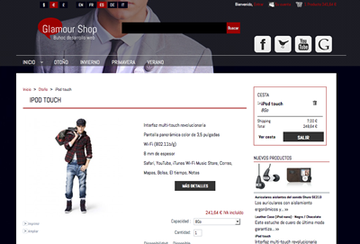 buhoc Posted July 12, 2012 Share Posted July 12, 2012 (edited) Plantilla Glamour-shop Ps1.4 Excelente plantilla para tienda de moda o ropa. Realizada por Buhoc.com Diseño orientado a tiendas de moda Válido para las versiones 1.4 de Prestashop Fuente "Abel" integrada para su correcta visualización desde cualquier navegador Módulo slider en inicio Módulo Banner en inicio Módulo carrousel de categorías Posibilidad de incrustar videos Módulo Footer Enlaces a redes sociales Servicio de asistencia en instalación Posibilidad de personalización según imagen corporativa Precio 65,00€ i.v.a incluido Estamos terminando de configurar la plantilla para la versión 1.5 Imágenes: Enlace a Demo: http:www.buhoc.es/plantillas-prestashop/05 Enlace a Compra: http://www.buhoc.es Un saludo. Edited October 24, 2012 by buhoc (see edit history) Link to comment Share on other sites More sharing options...