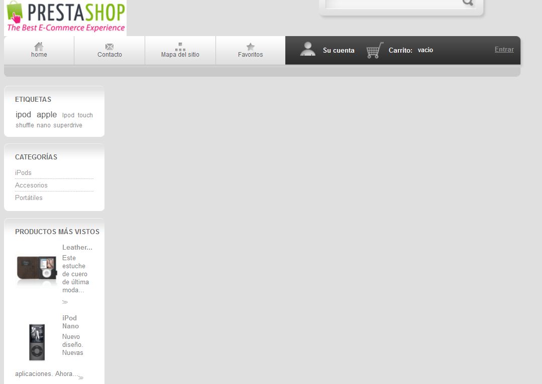 Cuando hago click a algunos de los enlaces de la iz , no presenta nada en el centro ASi que lo borre , por que ya habia instalado varios temas ya que creia que era problema por hber cargado otros temas , y nada , Instale de nuevo prestashop con nuvas bases de datos y nada , de veras agredecira mucho su ayuda , de antemano gracias