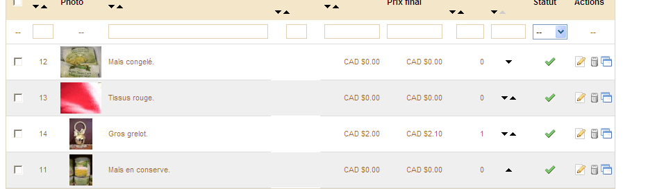 dubser Posted July 23, 2012 Author Share Posted July 23, 2012 Allo A- Effectivement en utilisant les réglages indiqués par Mme Maréchal la taxe dans le panier apparaît bien calculée soit $2.00*1.05*1.095 = 2.299 arrondi à $2.30. Je n'ai pas complété la transaction mais le calcul est exact à cet endroit tel que montré sur la 1e image attachée ce qui porte à croire que le prix facturé au client sera le bon. B- Ce qui m'a précédemment induit en erreur et incité à croire au malfonctionnement de calcul est que la colonne prix final du catalogue montre un prix final de $2.10 , 2e image et la page de définition du produit, 3e image montre un prix de vente final de $2.00 . Est-ce que les deux indications de prix final mentionnés dans le présent paragraphe sont erronées, y-a-il un bug que je devrais rapporter ou bien si ma compréhension de la signification de ces deux prix finaux est erronée, si c'est le cas que signifient ces deux résultats. Encore merci à Mme Maréchal pour cette réponse rapide. Dubser Link to comment Share on other sites More sharing options...
