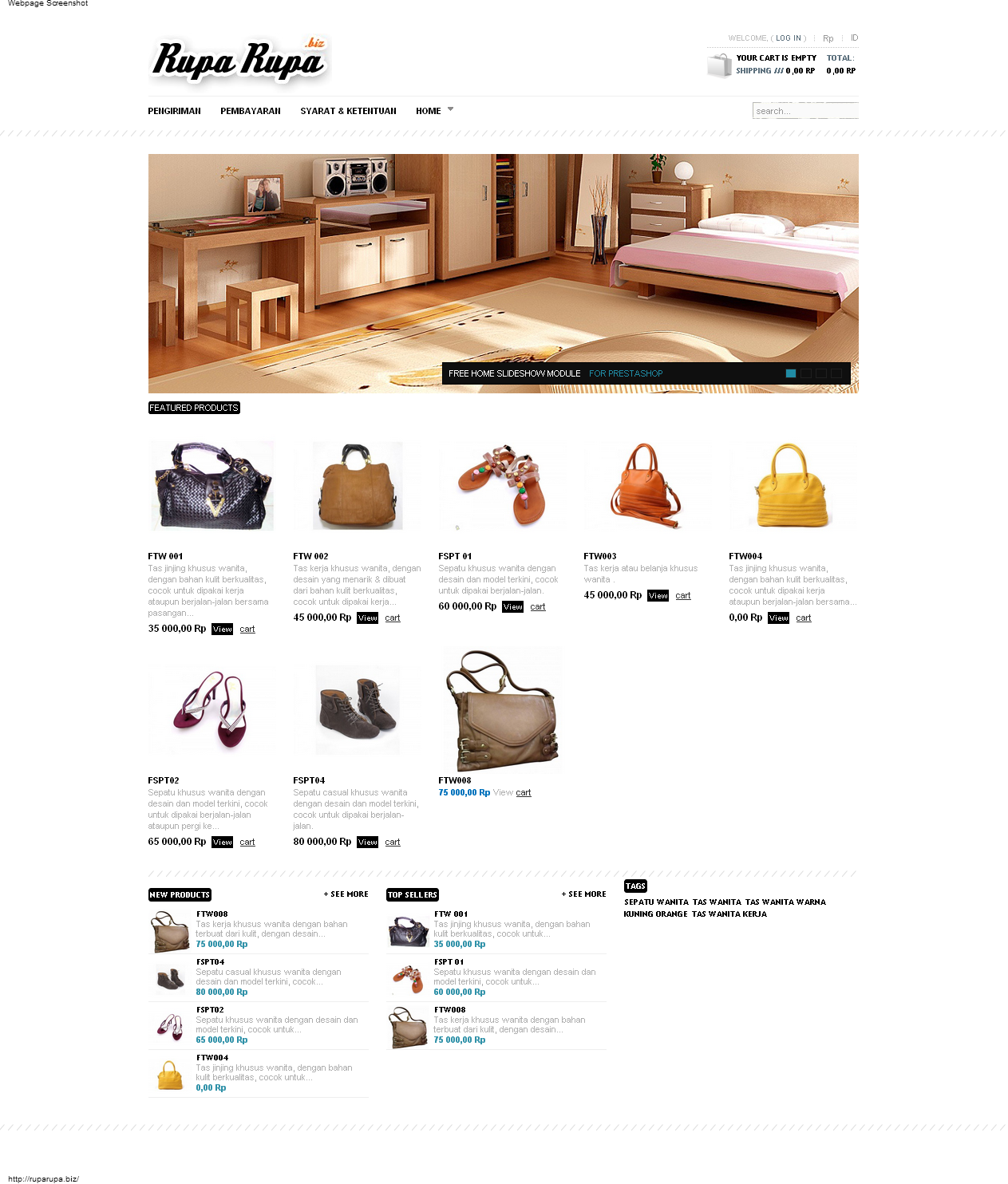 visualjunkies Posted July 19, 2012 Share Posted July 19, 2012 Mas bro sekalian, numpang nanya neh, saya newbie banget neh di dunia prestashop problem saya adalah: pada saat mengakses halaman Category, misal category product untuk "tas wanita", kenapa list produk di category tersebut tampil sebentar trus kok tiba-tiba hilang ya, begitu juga untuk category yang lainnya. Untuk sementara website presta sy masih saya oprek disana sini...monggo bisa dilihat di www.ruparupa.biz (mohon masukkannya juga apa yg kurang ya... ) untuk catatan saya memakai themes Black&White, PS 1.4.x terlampir penampakannya Gan... Link to comment Share on other sites More sharing options...