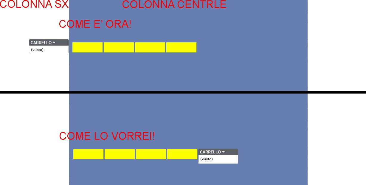 mattia's Posted July 25, 2012 Share Posted July 25, 2012 (edited) Buongiorno a tutti avrei bisogno di un aiuto per risolvere un problema che mi pervade da un paio di giorni. Avrei bisogno di creare un codice del carrello per poterlo diciamo metterlo nella colonna centrale nel mio menu. Ho provato a copiare il codice del modulo del carrello ma non funzionava l'estensione e riduzione animata; in pratica avevo due carrelli e quello aggiunto da me si estendeva o riduceva quando premevo sulle freccette dell'altro già presente nella colonna di sinistra( right nel css). Quindi potete darmi una mano? Vi posto qualche immagine per farvi capire meglio ciò che vorrei fare Edited July 25, 2012 by mattia's (see edit history) Link to comment Share on other sites More sharing options...