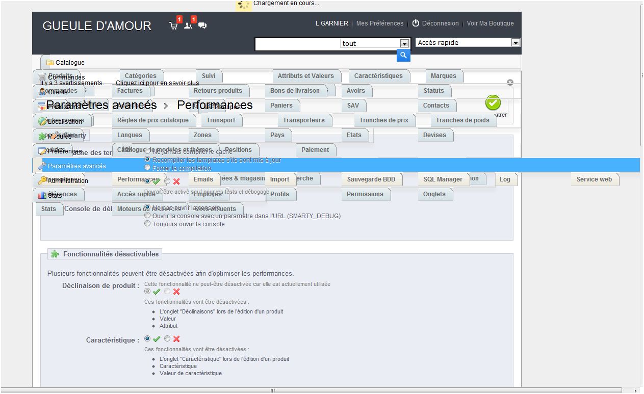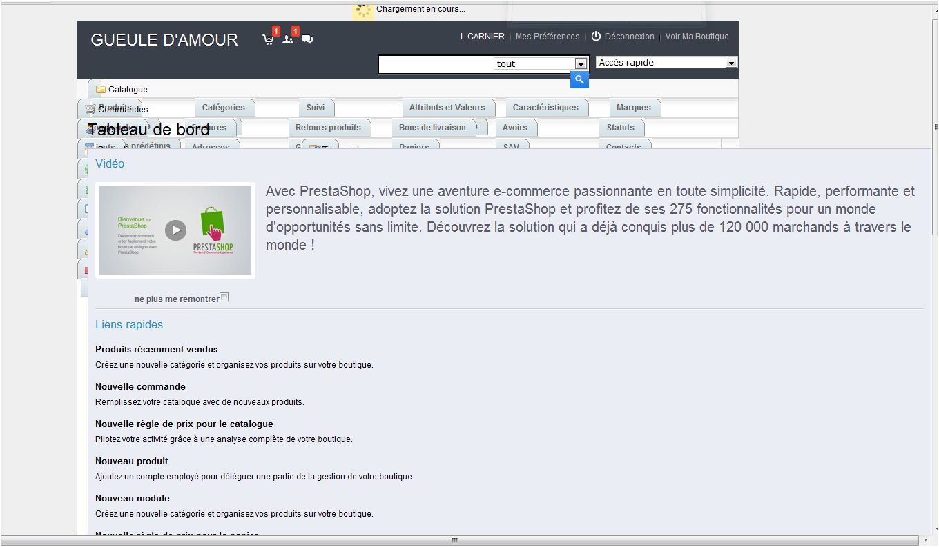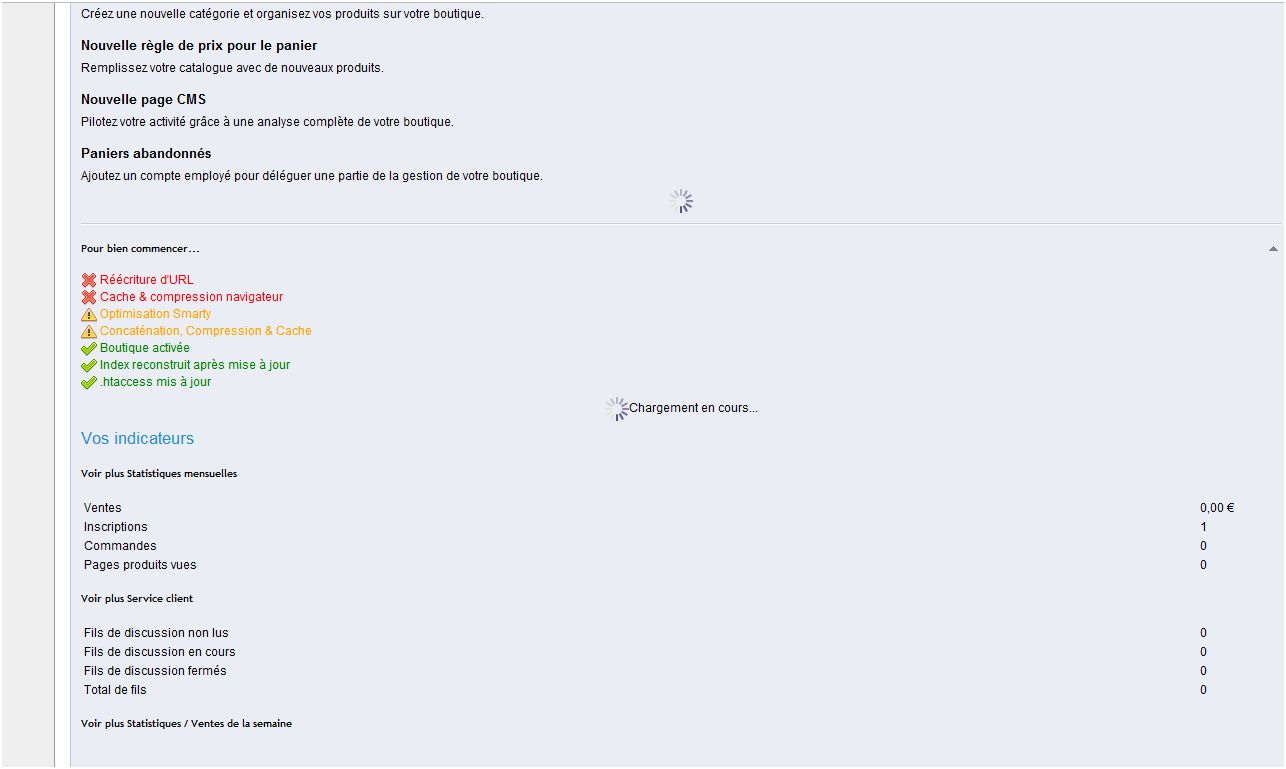 GAELLE Posted July 30, 2012 Share Posted July 30, 2012 (edited) Bonjour, Afin de tester la version 1.5, j'ai tenté l'installation en local, je crois que tout est ok, sauf que dans mon BO il y a des petits soucis de mise en page!! Voici ce que ça donne!! Il y a aussi l'icone et le message suivant qui tourne en permanence : "chargement en cours" Pouvez vous m'aider svp car ainsi je ne peux rien essayer du tout et c'est très frustrant!! Merci beaucoup:)) Edited July 31, 2012 by GAELLE (see edit history) Link to comment Share on other sites More sharing options...