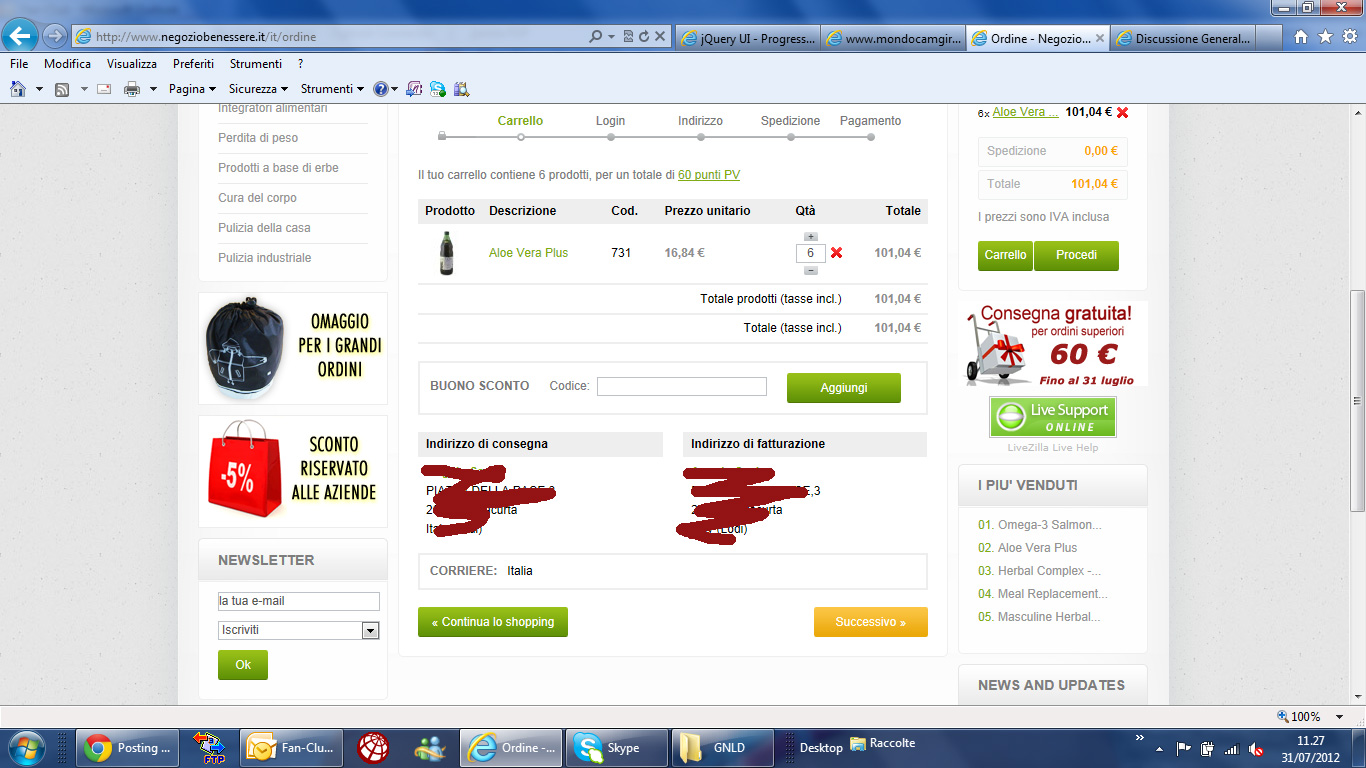 scar81 Posted July 31, 2012 Share Posted July 31, 2012 (edited) Mi sono accorto che nel mio e-commerce quando un cliente fa un ordine senza registrazione, poi la volta successiva si ritrova sotto il carrello direttamente indirizzo di consegna e fatturazione della volta precedente. Senza possibilità di modifica. Non credo che sia normale, dovrebbe apparire un link del tipo "modifica indirizzo". Allego il cattura schermo. Edited July 31, 2012 by scar81 (see edit history) Link to comment Share on other sites More sharing options...