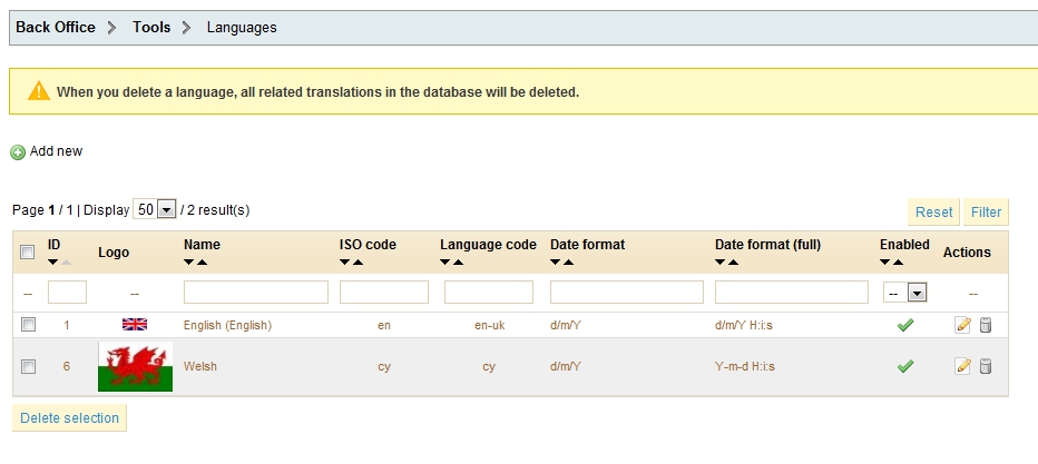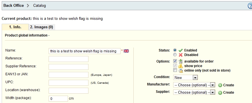 spring00 Posted August 2, 2012 Share Posted August 2, 2012 Hello I am having to create my own language pack in Welsh and so far I have created the language with the codes cy and copied the english into cy files in filezilla. But I cannot see the Welsh flag appearing in the Catalog. The language is showing up and is enabled and the Welsh flag appears under Languages and Translations and on the website itself. But we cant input the welsh info for the products as only the UK flag is showing up. Can anyone help? Also are there instructions somewhere for doing your own translation pack? Thanks Jen Link to comment Share on other sites More sharing options...