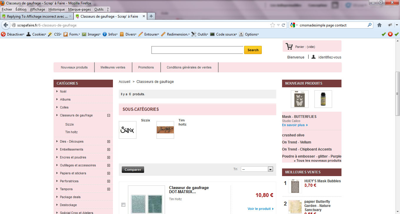 nico en short Posted August 8, 2012 Share Posted August 8, 2012 (edited) Bonjour, je ne comprend pas pourquoi mon site ne s'affiche plus correctement sous internet explorer. tout était nickel puis maintenant l'affichage n'est plus correct, sauf pour la page d'accueil. avec Mozilla pas de soucis, je ne comprend pas. En local je n'ai pas de soucis avec Internet Explorer. le site est hébergé chez OVH, peut être que le soucis provient d'eux ? j'ai bien sur essayé avec plusieurs version d'ie. version de prestashop 1.4.7.0 http://scrapafaire.fr merci Edited November 21, 2012 by nico en short (see edit history) Link to comment Share on other sites More sharing options...