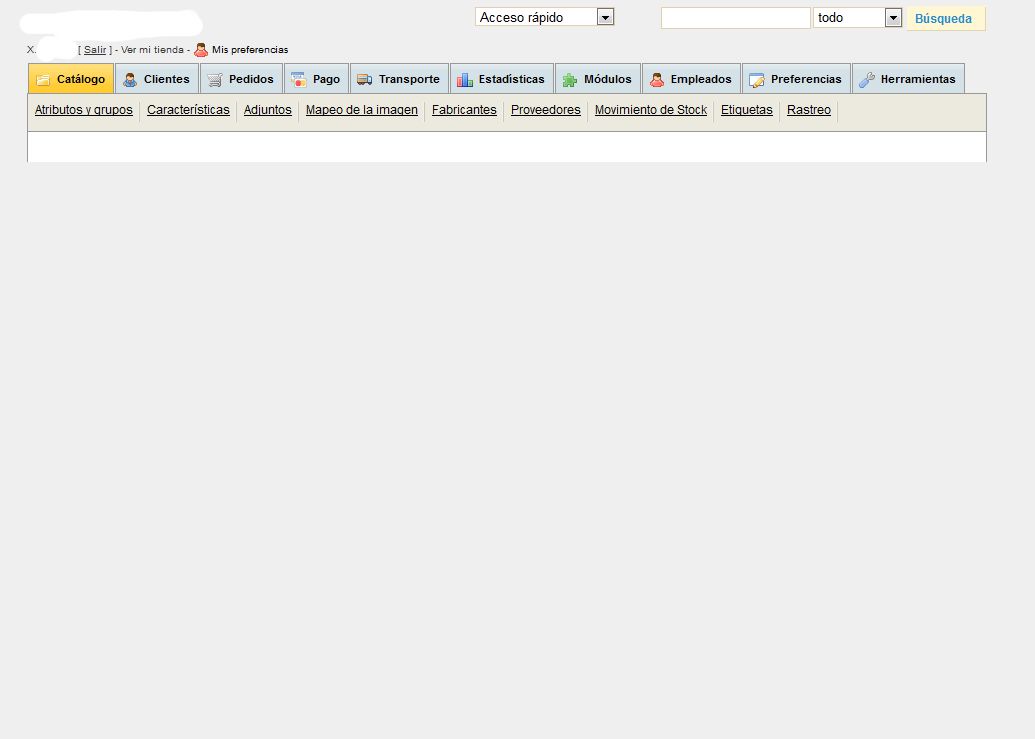 xavison Posted August 13, 2012 Share Posted August 13, 2012 (edited) Hola a todos, mi primer día con prestashop y mi primer problema.... Antes de nada me presento, ya que no he encontrado el lugar para hacerlo. Quiero empezar una tienda online con prestashop y estoy empezando, así que no tengo muchas nociones del software, ya que hasta la fecha he utilizado otra plataforma de alquiler que es ePages. Ahora el problema, He realizado la instalación nueva de 1.4.8.2 sin ningún conratiempo y con todos los checks de validación OK, y cuando accedo al panel de administración para añadir artículos y categorías nuevos, aparece la pantalla en blanco sólo con los títulos de los menús superiores..., por lo que no puedo crear categorías ni artículos !!!, el resto de menús parece que funcionan bien y son visibles. He probado con Internet Explorer y Chrome y pasa lo mismo y ya no se si es que me estoy dejando algo o es que tengo que instalar algún gestor de productos (espero que no!). Adjunto un pantallazo. Alguna sugerencia? Muchas gracias por adelantado! Saludos. Edited August 13, 2012 by xavison (see edit history) Link to comment Share on other sites More sharing options...