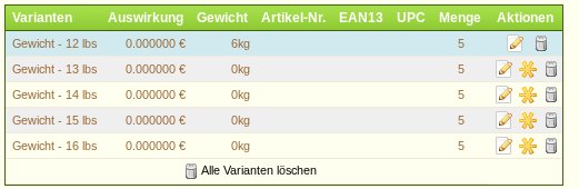 Richte dann deine Versanddienste damit ein. Und missbrauche nicht Varianten für eine Gewichtkalkulation. Varianten richte man auf jeden Fall nicht so ein, wie du es gemacht hast. In den Varianten gehören Aufpreis und Gewichterhöhung hinein gerechnet zum Standardgewicht des Produktes, also zur Standardvariante.