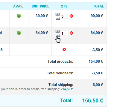<span style="font-size:11px; color: #666; font-weight:normal;">Remaining amount to be added to your cart in order to obtain free shipping:</span> <span style="font-size:11px; color: #099;">{displayPrice price=$free_ship}</span></td>