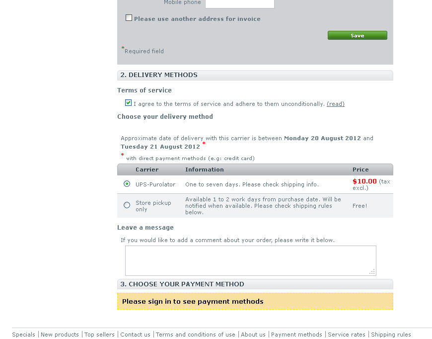 ps2k11 Posted August 18, 2012 Author Share Posted August 18, 2012 Using 1 step checkout the only things that show on checkout are 1. Account 2. delivery methods 3. choose your payment method no shipping estimator Link to comment Share on other sites More sharing options...