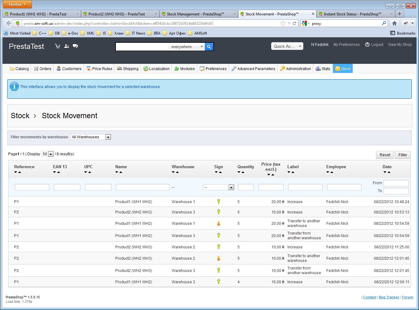 Nick Fedchik Posted August 22, 2012 Author Share Posted August 22, 2012 By the way to poor information: 0 quantity line refer to Product1 on Warehouse1 Link to comment Share on other sites More sharing options...