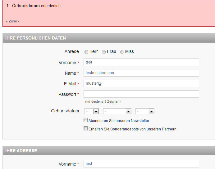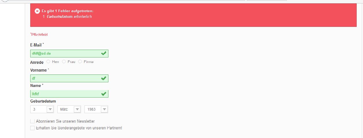 Habe noch schnell ein Bild angehängt, damit du siehst, dass es funktioniert. Geburtstag wurde nicht angegeben und beim Speichern wurde die Fehlermeldung ausgeworfen (oben rosa)