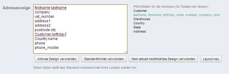 •     (alternativ hättest du ins Fenster auch einfach 'Customer:birthday'