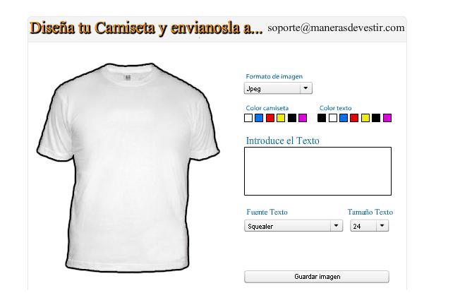 Hola a todos , navegando por internet encontré en una tienda de camisetas la opciond e escoger una camiseta , un texto , fuente , tamaño y escribir un texto para personlizar, además de guardar la imagen.