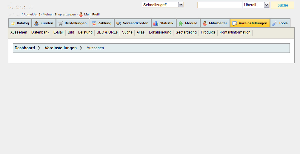ich habe Version 1.4.9 komplett neu installiert, es hat auch alles funktioniert. Nur kann ich keine Änderungen am Template vornehmen. Unter "Voreinstellungen" - "Aussehen" bleibt alles leer. Die Anzeige der Seite wird offenbar abgebrochen.
