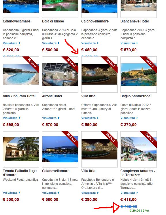 Potete cambiare anche l’ordine delle scritte dello sconto spostando sopra o sotto della prima stringa che vi ho mostrato i codici precedentemente indicati: