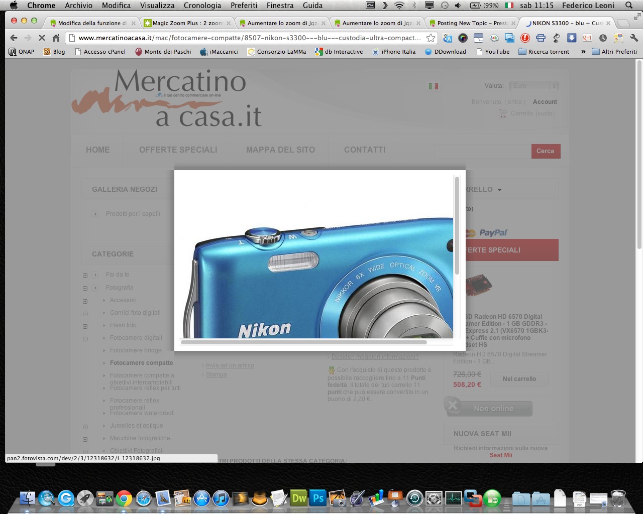 fededd21 Posted September 1, 2012 Share Posted September 1, 2012 (edited) Ciao a tutti, ho il seguente problema con le immagini dei prodotti. Nel mio sito uso per le immagini dei prodotti il link del fornitore e quando un cliente fa lo zoom sull'immagine mi appare una finestra, di dimensioni predefinite, con le barre di scorrimento attive. allego immagine. La mia domanda è la seguente: dove posso modificare le dimensioni predefinite della finestra zoom per arrivare ad eliminare le barre di scorrimento e vedere l'immagine intera? le mie immagini sono da link e non sul mio server. esempio su www.mercatinoacasa.it grazie a tutti... Edited September 1, 2012 by fededd21 (see edit history) Link to comment Share on other sites More sharing options...
