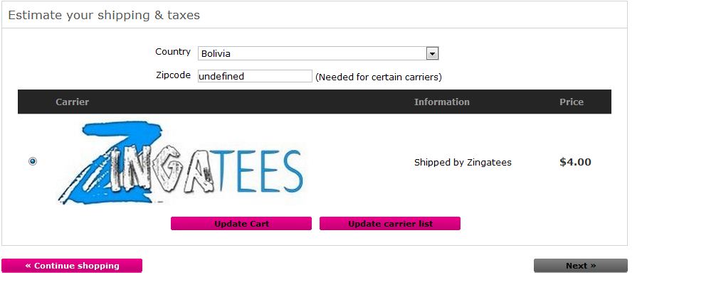 rajib217 Posted September 2, 2012 Share Posted September 2, 2012 I have build a custom carrier for my shop and include 3 zone like USA,CANADA,OTHERS for different shipping fees, also I changed all countries zone into my 3 new zone. But when continuing my shipping only USA zone's fee is shown for all country. I have added screenshots of my problem please help me. Link to comment Share on other sites More sharing options...