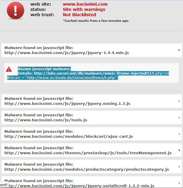 bacissimi Posted September 5, 2012 Author Share Posted September 5, 2012 Ciao, ho effettuato direttamente la scansione online con sicuri, purtroppo è gia la seconda volta che succede, il mese scorso google mi mise nella black list per fortuna riusciri a risolvere tutto nel giro di 2 giorni, ma questa volta non riesco a trovare il codice modificato. Ho contattato pure aruba ma per ora nessuna risposta Link to comment Share on other sites More sharing options...
