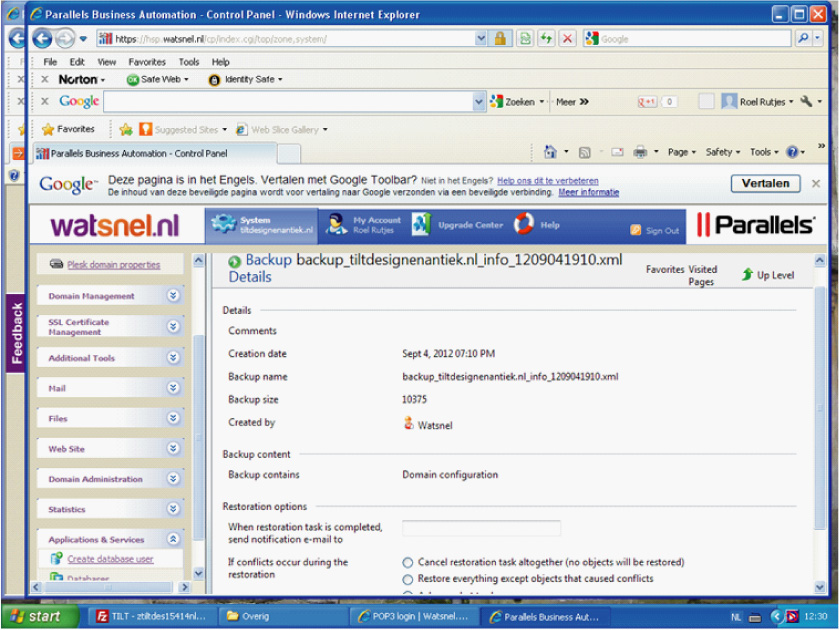 roelrutjes Posted September 6, 2012 Author Share Posted September 6, 2012 Hallo AKJV. Ik voel dat we steeds dichter bij de oplossing komen. Mijn host provider is Watsnel en ik heb inmiddels iets gevonden. Zij hebben een "home backupmanager server respository". Hierin is een restoration-mogelijkheid. Hierbij stuur ik je een printscreen van de pagina. Ik denk dat ik op de restore knop moet klikken? Link to comment Share on other sites More sharing options...