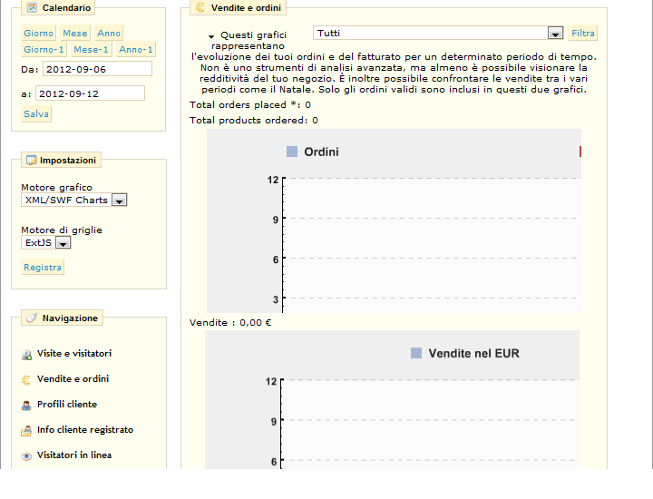 kondor75 Posted September 12, 2012 Share Posted September 12, 2012 Salve a tutti, da pochi giorni ho messo il mio sito in esercizio. Dopo le prime vendite andate tutte buon fine mi sono accorto che nel Back Office alla modulo "Vendite ed Ordini" ho tutti i valori a zero (ma in realtà già è stato venduto qualcosa) Il modulo è statssales. Ho controllato un pò sul web ma non riesco a trovare una soluzione. Qualcuno può darmi una mano? Gli altri moduli delle statistiche mi sembra funzionino tutti bene. La versione di prestashop è la 1.3.6 Grz a tutti in anticipo G.Paolo Link to comment Share on other sites More sharing options...
