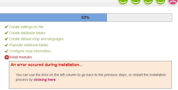 Michal N. SEO Posted September 14, 2012 Share Posted September 14, 2012 Dobrý den / ahoj máte někdo také problém s instalací prestashopu 1.5? Konkrétně: Create settings.inc file Create database tables Create default shop and languages Populate database tables Configure shop information Install modules An error occured during installation... You can use the links on the left column to go back to the previous steps, or restart the installation process by clicking here. Error log na cestě /public_html/prestashop/install/ : [14-Sep-2012 15:55:48] PHP Parse error: syntax error, unexpected $end in /home/XXXXX/public_html/prestashop/modules/blockcategories/blockcategories.php on line 212., Instaluji podruhé v čisté instalaci. Předtím jsem měl Error i 95%. Můžete někdo poradit? Link to comment Share on other sites More sharing options...