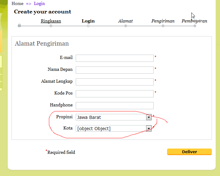 yusufzulkarnain Posted October 21, 2012 Share Posted October 21, 2012 (edited) <p> Terimakasih, modulnya, mas Ardian Saya pake PS versi 1.4.8.2 dan 2 langkah diatas sdh dilakukan dan Enable Guest Checkout di BO. Saya berperan tidak punya email. Setelah klik Add to Troli dan klik Checkout untuk membayar, saya dibawa ke halaman login? Apakah saya harus bikin akun atau memasukkan sembarang email dan sembarang password? Ketika saya coba bikin email baru ada tambahan isian Tax Identification, bagaimana saya bisa menghapusnya? Akhirnya saya bisa menghapus isian Tax Identification dengan menghapus fieldset tax identification dalam file ... public_html/themes/prestashop/authentication.tpl seperti ini : <div><fieldset class=""account_creation" dni"=""><h3>{l s='Tax identification'}</h3></fieldset></div> <div><p class=""required" text"=""></p></div> <div><label for=""dni"">{l s='Identification number'}</label></div> Bahkan saya juga telah menghapus isian form kodepos untuk form registry yang lebih simpel dengan menghapus fieldset-nya pada file yang sama. Edited October 21, 2012 by yusufzulkarnain (see edit history) Link to comment Share on other sites More sharing options...