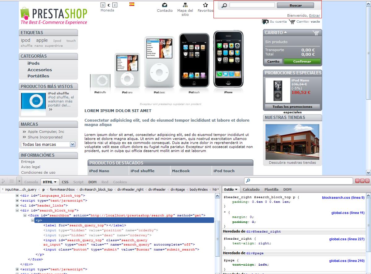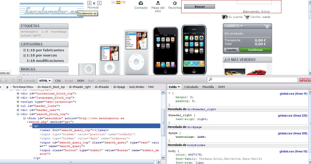 nadie Posted September 18, 2012 Share Posted September 18, 2012 Ya la tienes, gracias. Parece que no te carga este css: /themes/prestashop/css/modules/blocksearch/blocksearch.css Dale a desinstalar y instalar el modulo llamado: Bloque de búsqueda rapida Link to comment Share on other sites More sharing options...