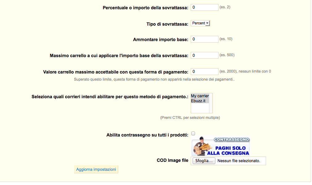 Prestalia Posted October 11, 2012 Author Share Posted October 11, 2012 ciao, questo è per la 1.4 : http://shop.prestalia.it/it/sistemi-di-pagamento/30-contrassegno-con-commissione-modulo-gratuito-prestashop.html Link to comment Share on other sites More sharing options...