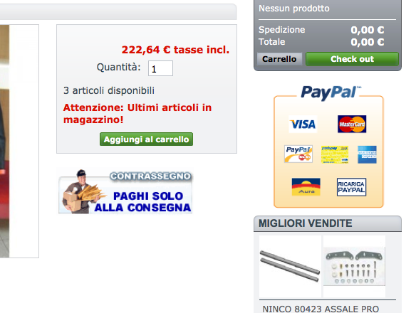 shen Posted December 10, 2012 Share Posted December 10, 2012 ciao, abbiamo creato e testato il modulo COD + FEE per la nuova versione di prestashop 1.5 Se interessati al modulo lo trovate qui: http://shop.prestali...p-14-tutte.html buon lavoro Io ho problemi con il modulo di default COD non funziona, mi da errore 404 se compro questo modulo mi garantite il supporto nel farlo funzionare? sono su Hosting Aruba >> www.whitetshirt.it/shoponline Link to comment Share on other sites More sharing options...