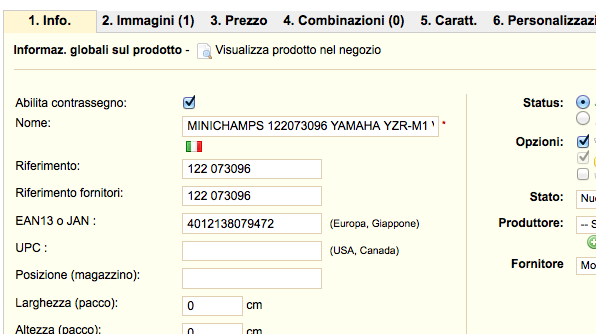 Prestalia Posted September 25, 2012 Share Posted September 25, 2012 (edited) ciao, abbiamo creato e testato il modulo COD + FEE per la nuova versione di prestashop 1.5 Funzionalità: - SCELTA IN SCHEDA PRODOTTO PER ABILITARE L'ARTICOLO; - SCALTA SE ATTIVARE SU TUTTI I PRODOTTI; - CARICAMENTO IMMAGINE; - VISUALIZZAZIONE NELLA SCHEDA PRODOTTO DELL'IMMAGINE; Se interessati al modulo lo trovate qui: http://shop.prestali...p-14-tutte.html buon lavoro Edited July 30, 2013 by Prestalia (see edit history) Link to comment Share on other sites More sharing options...
