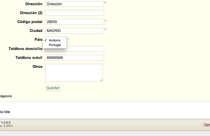 MarcusRB Posted September 29, 2012 Author Share Posted September 29, 2012 Hola, los países están cargados correctamentes, lo único que carga por ejemplo España (con sus provincias) en front-end a lo hora de nuevo registro o añadir dirección, pero si entras en back-end solo figuran todos excepto España.... adjunto nuevamente pantallazos. Versión en concreto que sal el error es la 1.4.9 Muchas gracias por el ayuda " nadie" Link to comment Share on other sites More sharing options...