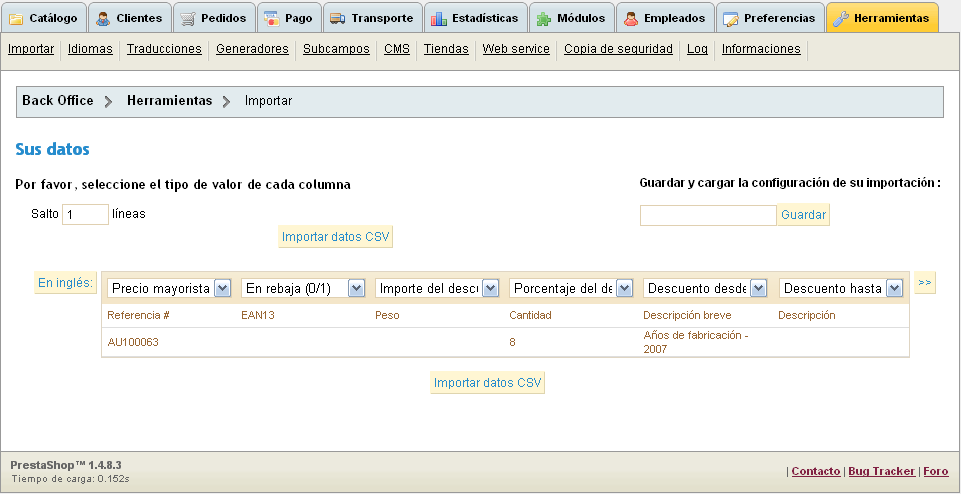 nadie Posted September 30, 2012 Share Posted September 30, 2012 Errores. Dices: Precio Mayorista -> AU1... (Eso no es un precio) UPC-> Y hay has puesto un texto. (Hay no tienes que poner texto, en ese campo no tienes que poner texto, ese campo es para otro asunto, igual que en el campo precio mayorista se coloca un precio y no texto, pues en UPC, tienes que colocar el upc, no un texto..) Los campos que no importes, en el desplegable selecciona "ignorar" Link to comment Share on other sites More sharing options...