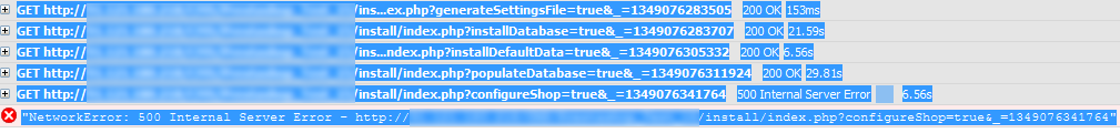 dutom007 Posted October 1, 2012 Share Posted October 1, 2012 (edited) Je tente d'installer Prestashop 1.5 sur un serveur dédié. A l'étape "Configuration de la boutique" j'ai systématiquement une erreur ! J'ai mis l'erreur en capture avec l'erreur 500 obtenu via firebug. L'erreur n'est pas du au temps d'exécution. EDIT : voici l'erreur présente dans le log apache : PHP Fatal error: Uncaught exception 'PrestaShopException' with message 'Property Employee->lastname is not valid' in /var/www/mydomain/classes/ObjectModel.php:790 Stack trace: #0 /var/www/mydomain/classes/ObjectModel.php(265): ObjectModelCore->validateFields() #1 /var/www//classes/Employee.php(132): ObjectModelCore->getFields() #2 /var/www/mydomain/classes/ObjectModel.php(465): EmployeeCore->getFields() #3 /var/www/mydomain/classes/Employee.php(138): ObjectModelCore->add(true, true) #4 /var/www/mydomain/install/models/install.php(464): EmployeeCore->add() #5 /var/www/mydomain/install/controllers/http/process.php(204): InstallModelInstall->configureShop(Array) #6 /var/www/mydomain/install/controllers/http/process.php(93): InstallControllerHttpProcess->processConfigureShop() #7 /var/www/mydomain/install/classes/controllerHttp.php(167): InstallControllerHttpProcess->process() #8 /var/www/CMS/Prest in /var/www/mydomain/classes/ObjectModel.php on line 790, referer: http://mydomain/install/index.php?restart=true Edited October 1, 2012 by dutom007 (see edit history) Link to comment Share on other sites More sharing options...