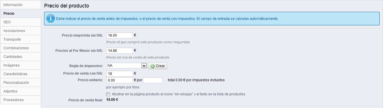 zhaki Posted October 1, 2012 Author Share Posted October 1, 2012 He descubierto la forma de replicar el comportamiento especificado en el primer post, y es usando el "Generador de combinaciones de productos". Una vez añado las combinaciones, desaparece el precio final del producto. Link to comment Share on other sites More sharing options...