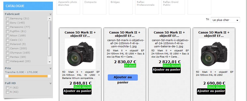 sbm Posted October 1, 2012 Share Posted October 1, 2012 Buenos dias, A pesar de haber re-hecho el index del catalogo, el layed navigation no funciona correctamente. Ver en imagen adjunta que el filtro de precio marca hasta 170Euros, cuando hay productos muchisimo mas caros. Como coregir esto por favor? Muchas gracias, Steevn Link to comment Share on other sites More sharing options...