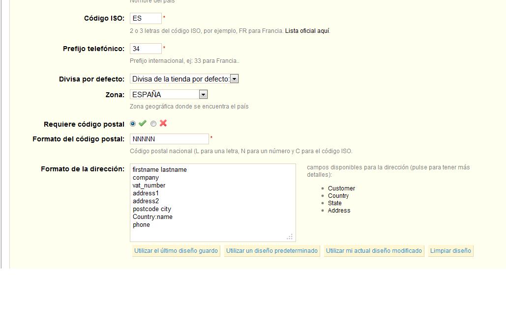 nadie Posted October 1, 2012 Share Posted October 1, 2012 Buenas noches, despues de varios dias sin tener movimiento en la tienda, esta tarde me ha llamado un cliente indicandome que llebaba un rato intentando registrarse en ella y que no le dejaba la tienda por que tenia que poner el telefono, logicamente el telefono lo ponia, despues de esa llamada me he puesto a mirarlo pero no doy con el tema, por eso recurro a vosotros para ver si me podeis ayudar. Os pongo una imagen para que veais el error que me sale. La version de prestashop que estoy usando es la 1.4.8.2 y el theme el prestashop_new. Si queries intentar registraros en https://www.capitaldelpoker.es. Un saludo y desde ya muchas gracias por la ayuda que prestais Hola, que tienes puesto en la pestaña Transportes -> Países, por ejemplo en España -> Formato de la dirección Link to comment Share on other sites More sharing options...