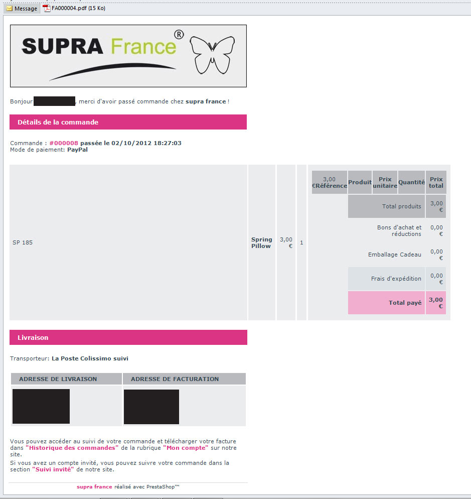 jog Posted October 2, 2012 Share Posted October 2, 2012 Bj, Voici mon mail de confirmation de commande Quelqu'un pourrait me dire comment ajuster les colonnes afin de le rendre un peu plus joli. Si vous pouvez être assez clair sur les codes a changer et les fichiers à toucher (Je n'y connais pas grand chose ! ) Merci d'avance Link to comment Share on other sites More sharing options...
